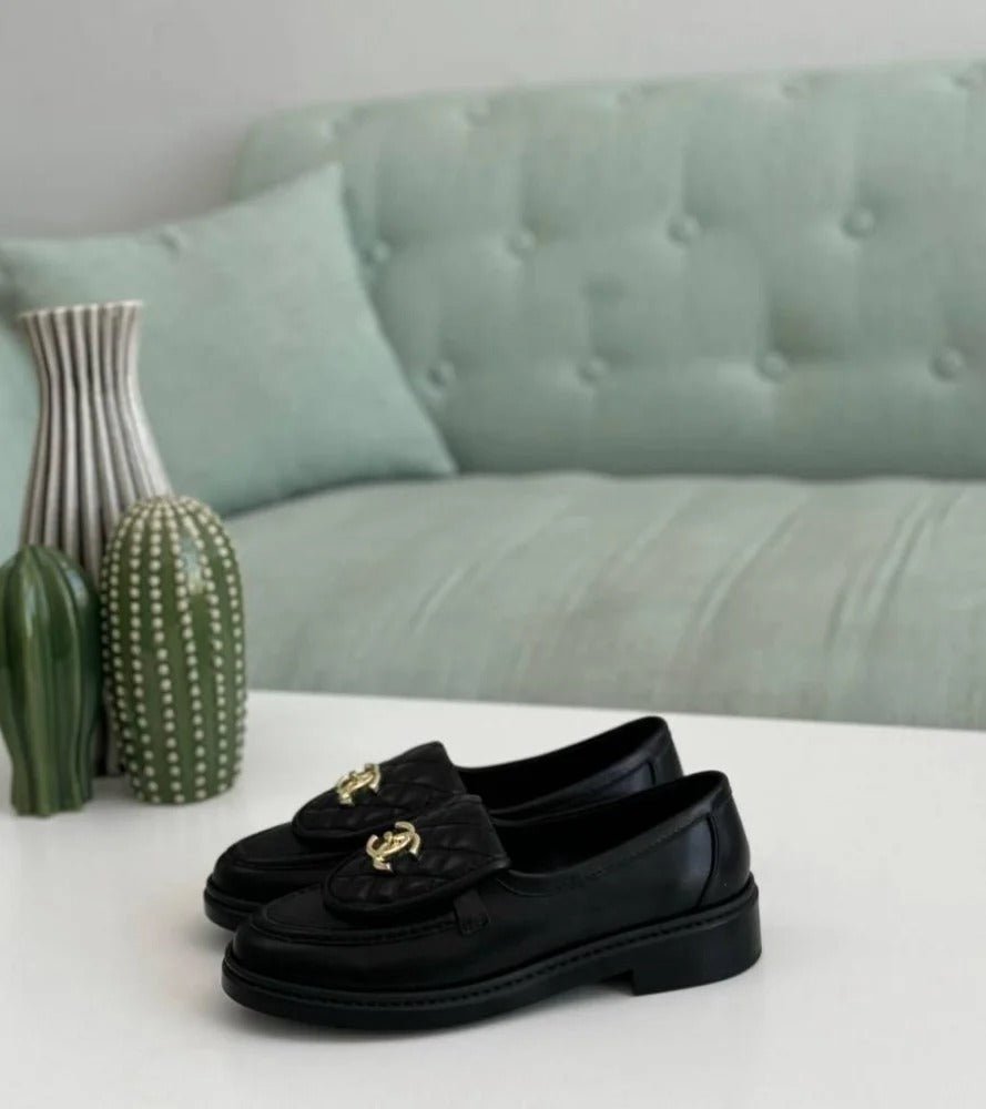Elevate your everyday style with Chanel Black Leather Loafers, featuring a polished gold-tone round lock. Made from luxurious leather, these loafers combine comfort with signature elegance, perfect for work, casual, or chic weekend wear.