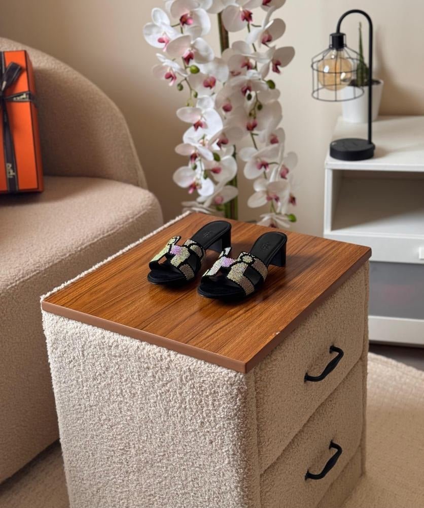 Step into luxury and sparkle with the Hermès Oran Women’s Black Rainbow Rhinestone Heeled Sandals. Crafted with premium materials, these elegant sandals feature a sleek black silhouette accented with dazzling rainbow rhinestones, adding a touch of glamour to every step. The comfortable heel and refined design make them perfect for evening events, parties, or any occasion where you want to make a statement. Sophisticated yet playful, these sandals embody the perfect balance of style and elegance.